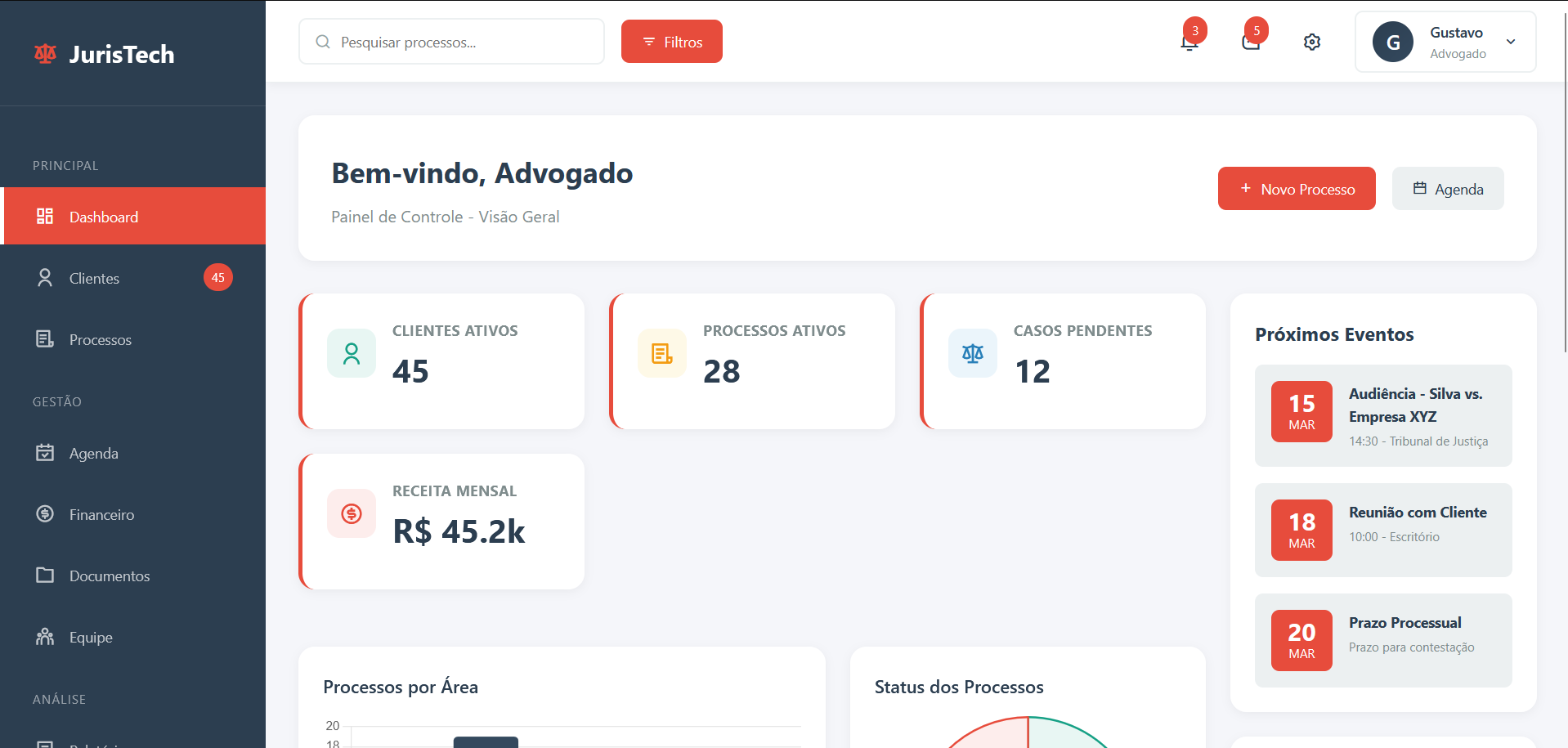 Sistema sob demanda com o objetivo de gerenciar clientes e processos para escritório de advocacia. Conta com módulo de Processos, Financeiro, Relatórios e diversos outros módulos.