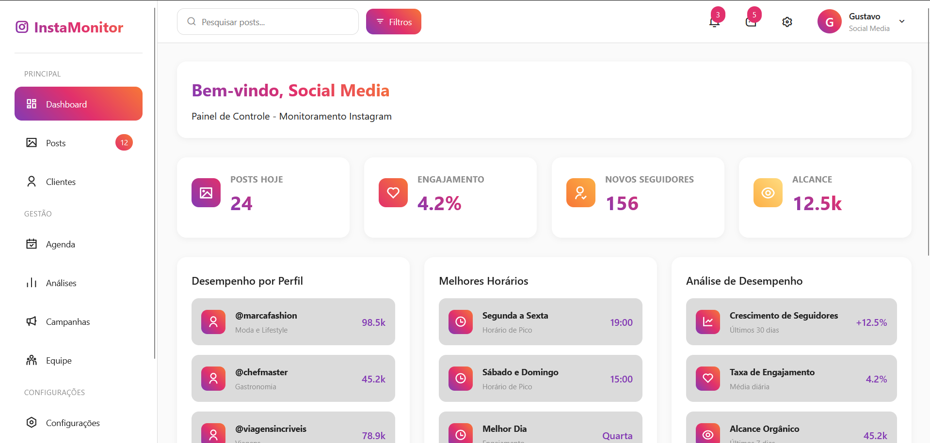 Desenvolvimento e suporte de sistema para automatizar a captação das mídias dos clientes do Instagram.